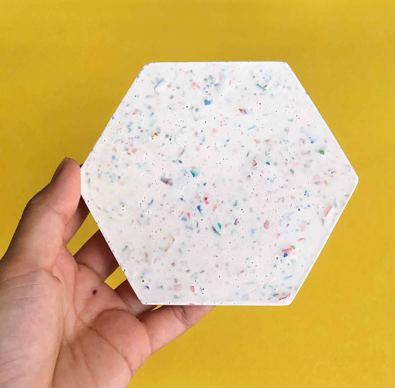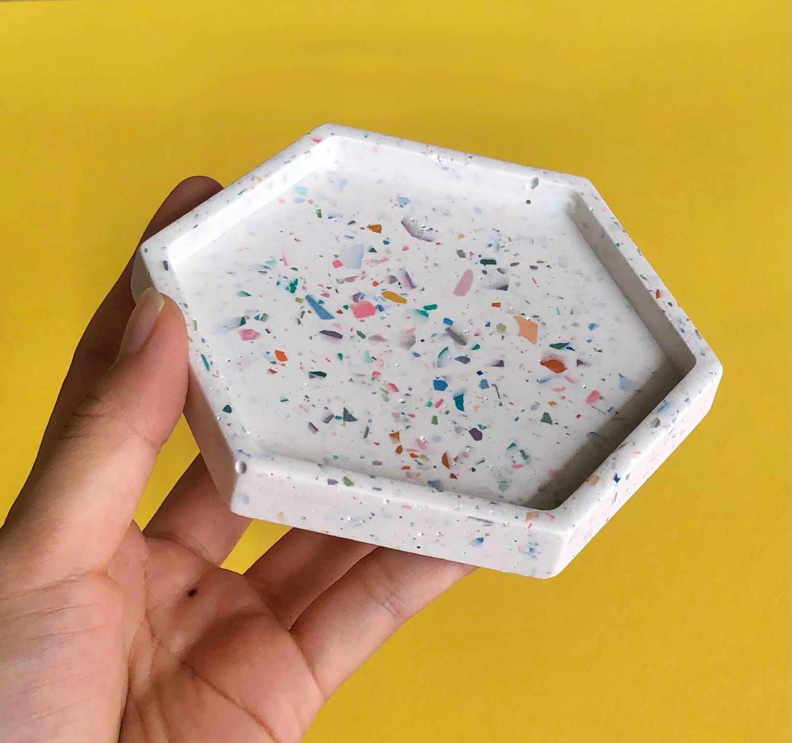 水性樹脂を素材に使用したマーブル柄ヘキサゴン型のマルチトレイです。